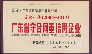 万事泰集团获2013年度“广东省守合同重信用企业”授匾 推荐