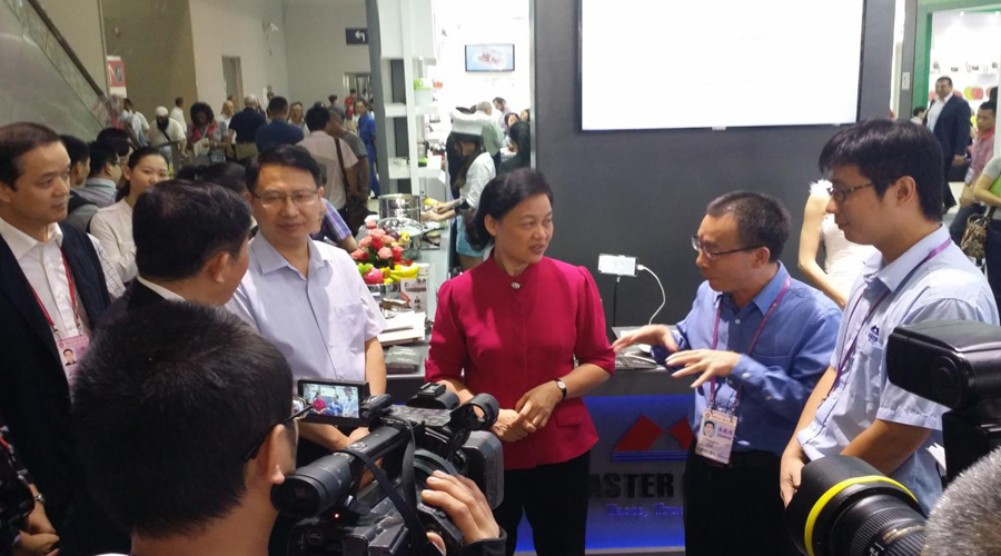 On October 24th, the vice governor of Guangdong Province Zhao Yufang, accompanied by Wang Runsheng, the deputy director of Canton Fair and the deputy director of the Foreign Trade Center, visited the exhibition position of Master Group in the 116th Canton