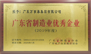 「喜讯」万事泰集团荣获“广东省制造业优秀企业”称号、集团常务副总裁刘炳耀获得“广东省制造业优秀企业家”称号推荐