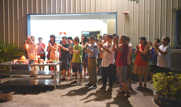 集团讯 金秋送爽迎中秋,丹桂飘香庆佳节。在经历了盛夏的酷暑后,中秋佳节在习习凉意中如约而至。万事泰集团已经提前在9月6日给全体员工送上了节日的问候与祝福,并在行政部经理陈永锦的带领下,行政人员为员工发放了月饼、花生油等节日福利。时至中秋,团圆之夜。为了迎接2016年中秋佳节,并传承万事泰集团多年来的传统文化,9月15日晚,由集团行政部组织了集团“贺月仪式”。集团董事长梁桂泉携家人到达厂区,执行总裁刘炳耀及各部门代表30多人共同参加了贺月仪式。
