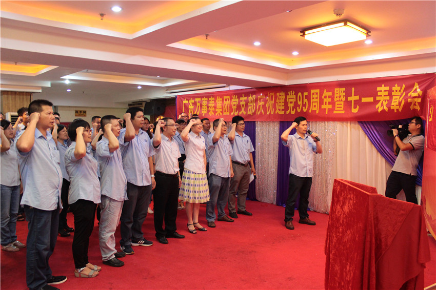 集团讯 2016年7月1日下午5点,县委组织部副部长、县直工委书记苏佐英、县委组织部党建办公室何四福主任、县经贸党委副书记陈婉华、县经贸党委办公室主任莫树佳,集团常务副总裁刘炳耀,集团全体党员参加了万事泰集团庆祝中国共产党成立95周年大会。大会开始前,集团党支部书记陈永锦领誓,新老党员紧握右拳,面向党旗庄严宣誓。重温入党誓词是一次精神洗礼,让党员更加坚定了理想信念,作为一名新时期共产党员,一定要继…