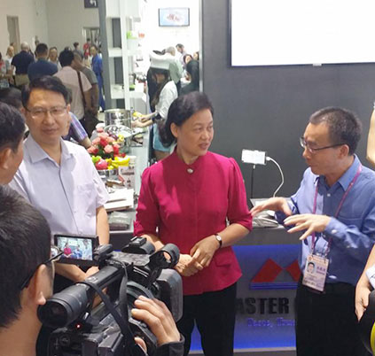 10 月24 日,广东省副省长招玉芳在广交会副主任、外贸中心副主任王润生陪同下视察了第116 届广交会,招玉芳一行来到万事泰集团展位视察,常务副总裁刘炳耀接待了他们。刘副总裁向招副省长汇报企业的转型升级、创新发展、市场开拓以及在广交会的成交等情况。招副省长表示,企业只有创新才有生命力,企业应加紧通过品牌建设、技术改造、人才培养等方式,转型升级,提高核心竞争力。万事泰集团一直致力于生产出口高端智能厨具,产品远销德国,广受好评。