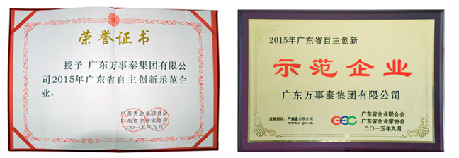 开幕式上,多家知名企业被授予“2015年广东省自主创新示范企业”荣誉称号。经集团行政部上半年对此项目的不懈努力与申报,万事泰集团与王老吉、珠江啤酒等知名企业名列其中。示范企业的评选是从各地市经信局、省市行业协会、省市属大集团企业和企联系统等47家单位通过初审、调研和终审程序评审出来。