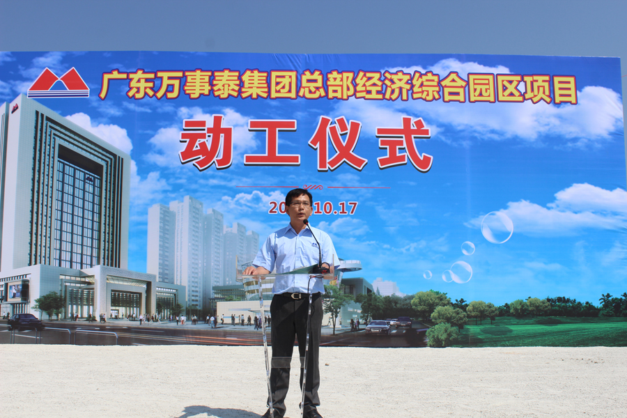 10月17日上午,云浮市政协主席黄达辉、市人大常委会常务副主任黄伙有、新兴县委书记、人大常委会主任叶锐、县委副书记、县长唐谊、县政协主席梁国华、县政协党组书记区耀启、县委副书记陈就庆、县人大常委会常务务副主任梁锦钊等县四套班子领导约70余人出席了万事泰集团总部经济综合园区项目动工仪式,集团管理人员代表近200人参加了此次活动。