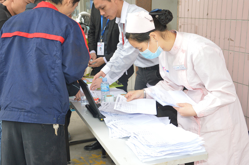 (万事泰员工正在排队进行胸透体检)