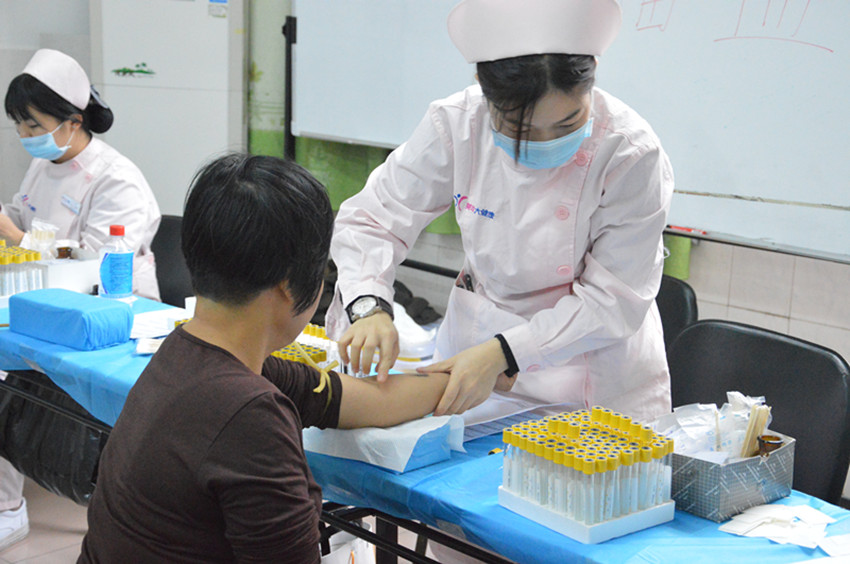(集团关注员工健康,为员工进行抽血等一系列年度体检)