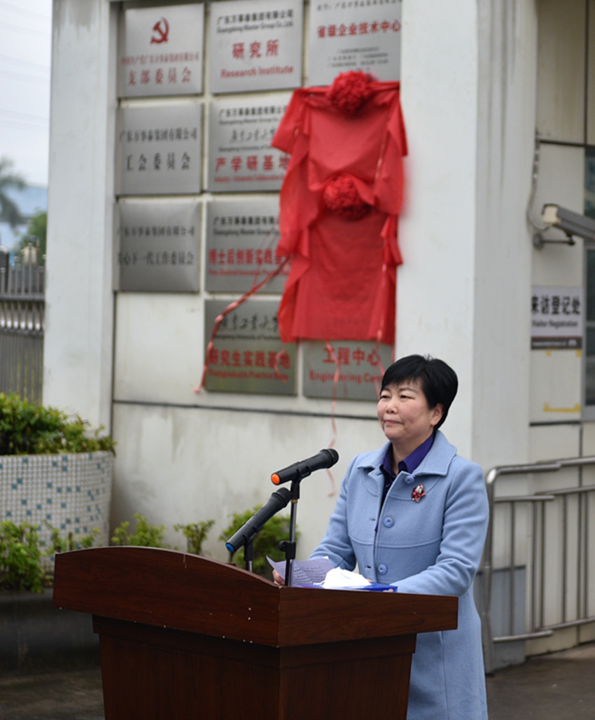 云浮市科技局局长曾云锋,云浮市科协主席、市科技局党组副书记梁敏君,北科大广东研究院院长何新波,新兴县副县长岑树德,新兴县科技局局长梁伟强、副局长梁瑞霞,新兴县经信局局长伍文才、副局长梁奋强,万事泰集团董事长梁桂泉、常务副总裁刘炳耀以及万事泰集团中层管理团队、各位媒体朋友共80余人出席揭牌仪式。