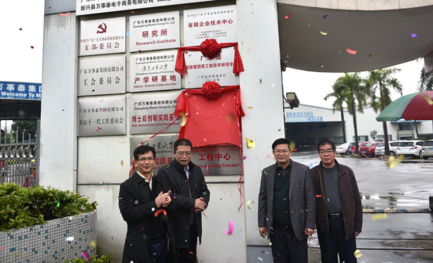 云浮市科技局局长曾云锋、万事泰集团梁桂泉先生等嘉宾共同为广东省省级“智能餐厨具技术工程研究中心”揭牌。