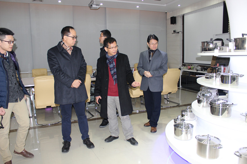 随后来访嘉宾在万事泰集团会议室举行座谈会, 会上万事泰集团董事长梁桂泉表示:“现在是智能科技的时代,中国必须要走出属于自己的工业模式。万事泰作为不锈钢餐厨具行业的翘楚,清楚认识到智能厨房是万事泰转型升级的发展良机。因此,万事泰集团借此东风,在去年11月举办了”2015年智能传感器与智能厨房应用技术产业论坛“,有多家国内外知名高校和科研机构专家来到新兴激扬论道,高屋建瓴,探讨不锈钢制造业的转型发展之路。