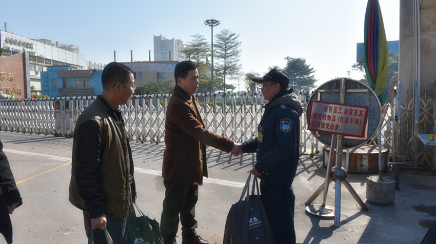 陈永锦一行先后慰问了万事泰总部值班人员、员工宿舍值班人员、事业二部值班人员、嘉事泰工业园区值班人员等集团员工。在嘉事泰工业园区内,陈焕文勉励值班员工要尽心尽职,并询问了春节期间安保管理工作,要求值班人员,加强巡查力度,确保新春期间厂区安全。随后陈焕文与值班人员一同巡查厂区,并指导了值班人员如何做好厂区安全工作,确保各项监控设备的正常运行。