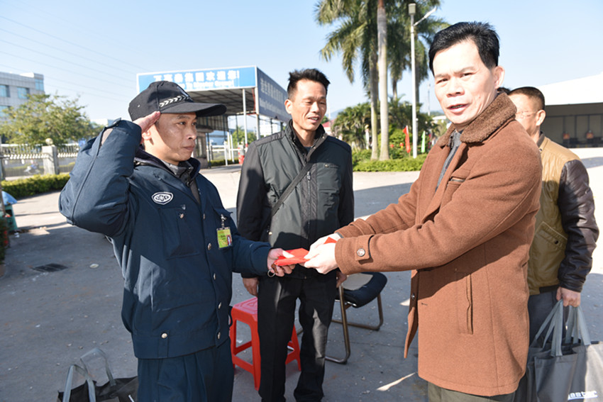 集团讯 吉祥如意年初一,欢天喜地过猴年。2月8日上午,万事泰集团党支部书记陈永锦、行政部副经理陈焕文、总裁办助理欧剑华一行,对新春佳节仍然坚守值班的集团工作人员进行春节慰问,他们代表集团为值班人员带去丰厚的新春礼物和慰问金,送上真挚的祝福和问候。