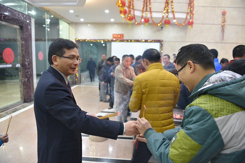 集团讯 2月7日(农历除夕夜)晚上10时许,在万事泰集团总部一楼大堂,集团举办了2016年春节团拜会活动,在集团董事长梁桂泉、常务副总裁刘炳耀的带领下,集团各部门负责人及董事长家属、广大职工代表及家属欢聚一堂,互致祝福、共话美好未来,互敬互爱万事泰,同心同德拜团圆。