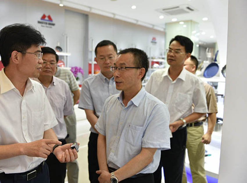 参观过程中,万事泰代表依次为王胜展示万事泰自主研发的智能烹饪台E-cook table、智能火锅线以及荣获德国红点奖的简洁微压锅。王胜市长对万事泰科技创新给予高度的评价。