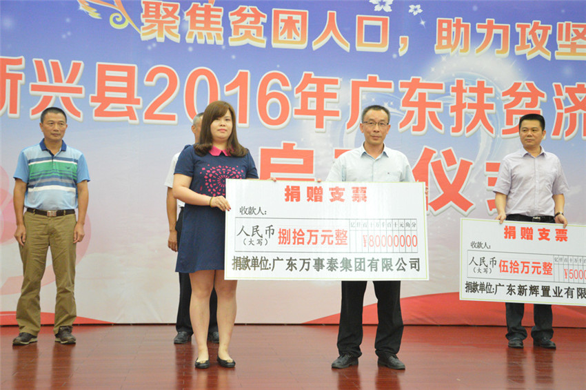 集团讯6月29日下午,新兴县在县委、县政府大楼大会堂举行2016年“广东扶贫济困日”活动启动仪式,县委书记唐谊,县委副书记、代县长梁子财,县政协主席梁国华等县四套班子领导,县委县政府机关大院全体干部职工,万事泰集团等企业代表共300多人参加启动仪式,并进行了现场捐款献爱心活动。