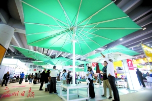 外商正在广交会会场选购国内设计制作的遮阳伞。广州日报记者邵权达 摄文/广州日报记者李天研