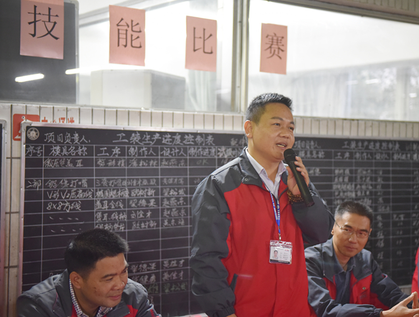 本次大赛共有8名选手参加,分别有:高级技工余广雄,钳工陈健勇、刘金才、欧树新、梁德果、欧国长、潘松林、欧国庆。本着公平、公正、公开的原则,8名选手通过抽签方式决定出赛顺序。由技术总监黎健泉、孔萌,项目经理刘克汉、陈子一、罗思聪、梁炎明,工艺技术科长苏树镇,以及工艺工程师陈树清担任评委。
