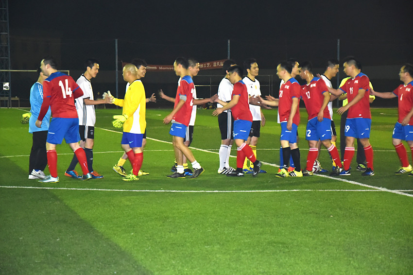 比赛结束,双方球员友好握手,体现“友谊第一,比赛第二”的运动宗旨!