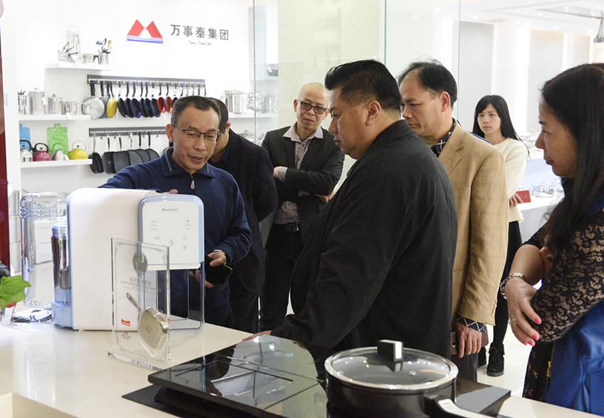 梁家兴一行在刘总的带领下先后来到事业部各车间、技术中心、检测中心和产品展示厅。刘总为大家介绍了万事泰集团产品的生产环节、工艺特点及质量检测的严谨性。参访团对万事泰集团所有产品在制造过程中的整体品质和高端质量水平表示赞叹不已。
