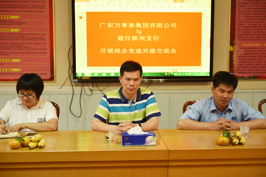 集团讯 5月5日下午,我集团党支部书记陈永锦、党支部副书记梁洪光等人一行来到中国建设银行新兴支行开展银企党建共建互动交流活动,建行党支部书记、行长张汉明等人热情接待并出席交流会。