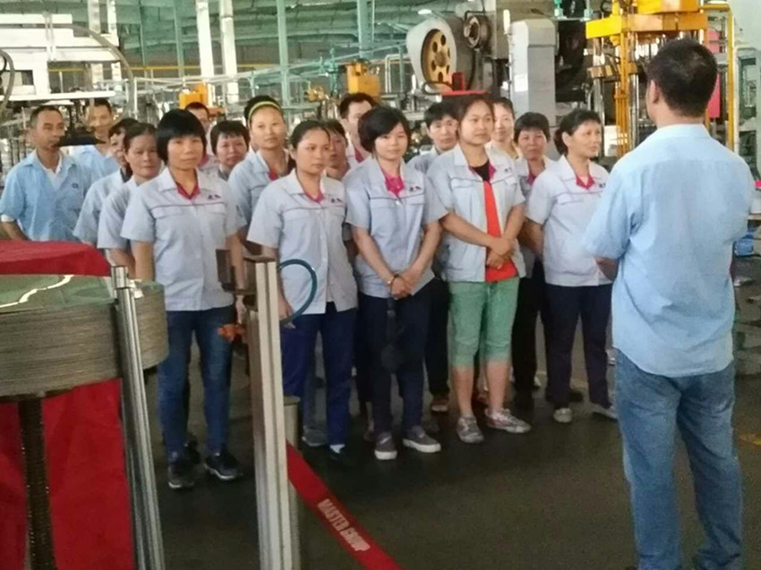 参加改善周工作中有生产巡查组、冲压复底车间,装配车间和抛光车间的相关领导。
