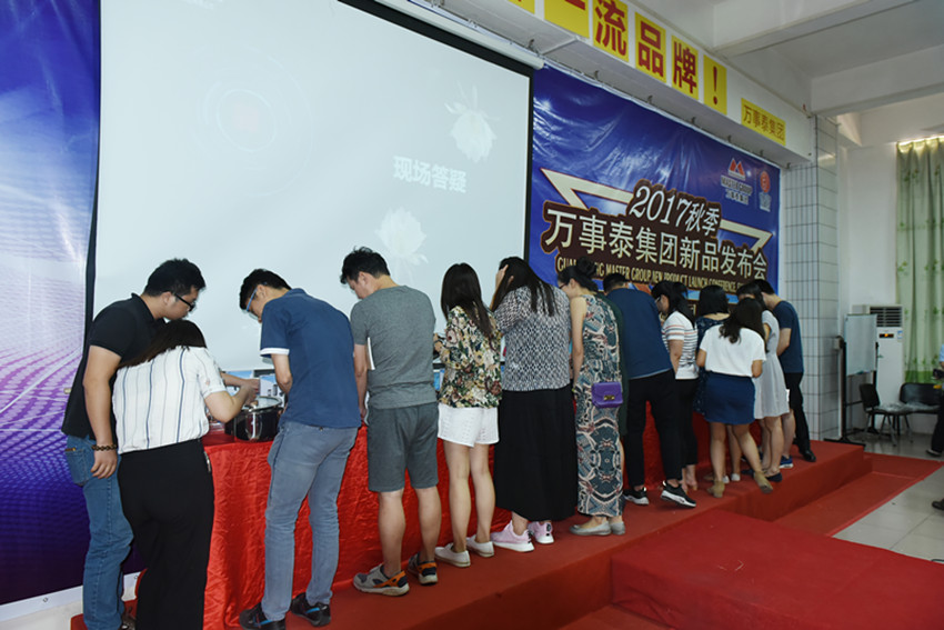 集团讯 9月26日,由万事泰集团技术中心、研究所、电器公司联合举办的万事泰集团2017秋季新产品发布会在集团总部举行,集团总裁办、各业务部门、各研发部门共计110人出席了本次发布会。