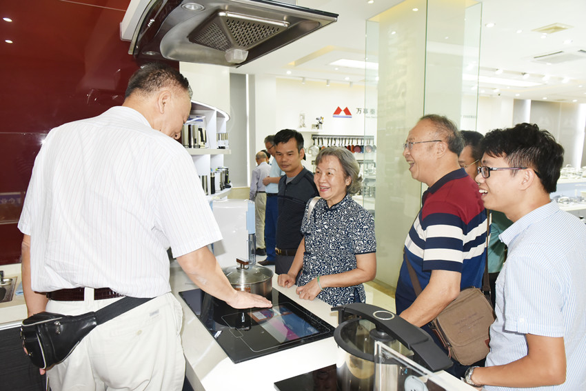 来访专家一行首先参观了万事泰自主研发的智能整体厨房,了解到传感器和智能技术应用领域对不锈钢餐厨具行业转型升级产生的创新意义。随后在座谈会上,陈永锦与专家组对集团产品创新情况及人才引进情况,展开了热烈的讨论。