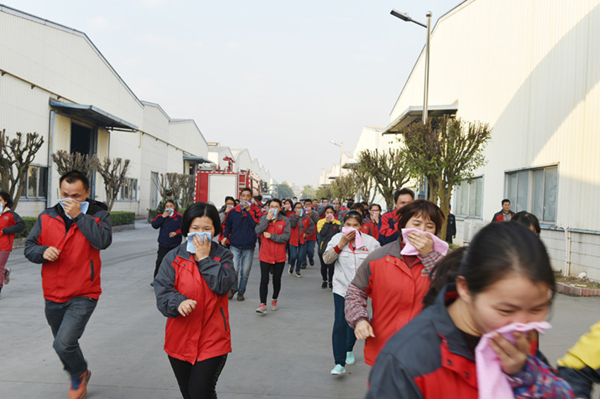 演练前,新兴县消防官兵耐心为万事泰员工讲解火灾的预防、逃生自救技能和灭火器等消防器材使用的消防知识,指出员工在演练过程中应该注意的事项和错误之处,使员工进一步了解一旦火灾发生如何报警、正确扑救、自救和逃生等技能。随后,展开了演练实操,员工在消防官兵的指导下,手捂湿毛巾,井然有序的、迅速的撤离到安全地带。