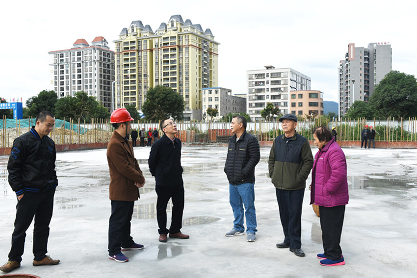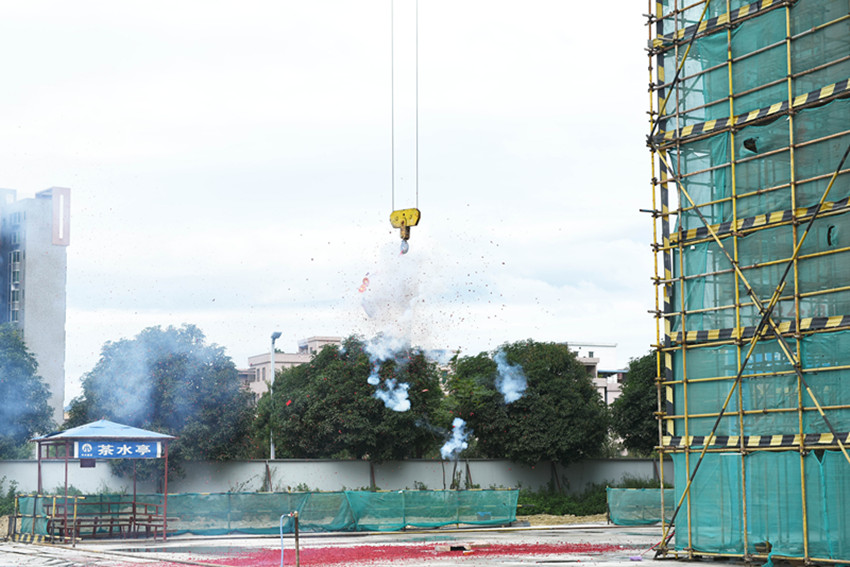 伴随着震耳欲聋的鞭炮声,封顶正式落地完成。