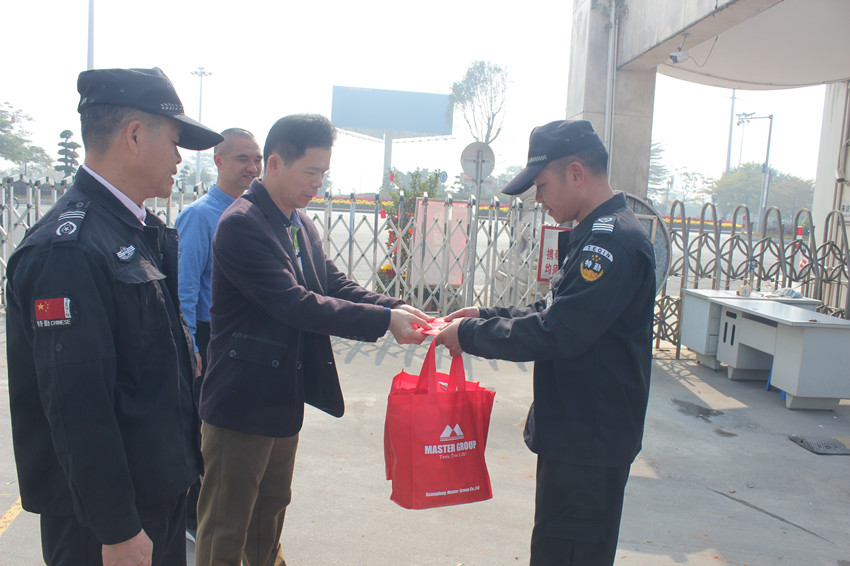 集团讯 2018年2月16日,万事泰集团党支部书记、行政部经理陈永锦受集团董事长梁桂泉和常务副总裁刘炳耀的委托前来看望慰问仍然坚守岗位的值班员工,并代表集团送上节日祝福和新春慰问礼品,同时也对他们在春节期间仍坚守岗位表示感谢。