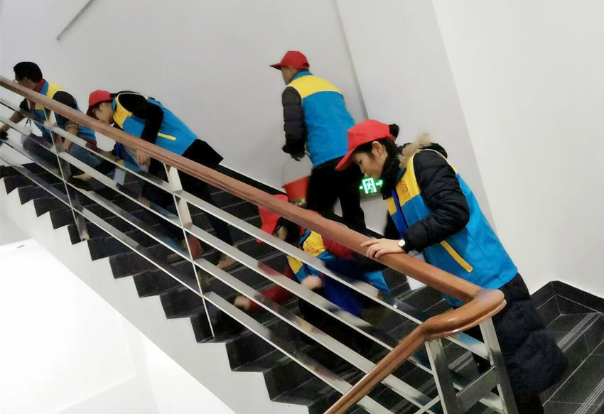 1月28日,万事泰集团志愿者一行12人在李丽娥、温文翠的带领下到六祖广场进行清洁大扫除,这一天的气温4度,阴雨连绵,但志愿者们仍干得热火朝天,抺楼梯、擦台凳、围栏……一连干了两个多钟,他们的手冻得通红,水也顾不上喝一口,坚持把广场内外的清洁卫生搞好才回家。