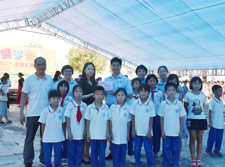 万事泰工会主席梁洪光代表集团为凤凰小学送上六一慰问金