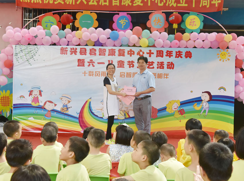 万事泰工会主席梁洪光代表集团为启智康复中心送上六一慰问金