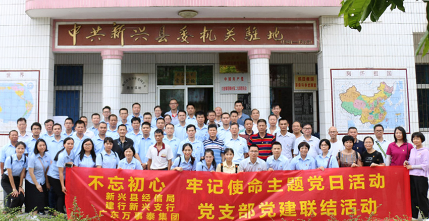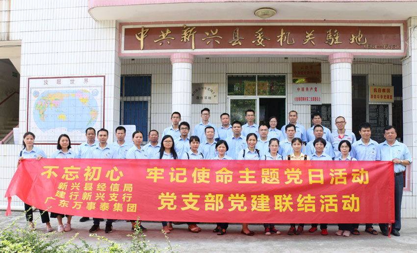 集团讯 为充分展现基层党组织和党员学习宣传贯彻十九大精神,激发广大党员深入学习和发扬革命传统精神,通过革命传统教育,使广大党员受到启迪。6月30日,县经信局、建行新兴支行、万事泰(政、银、企)三方党支部组织共80名党员到云浮市中共党史教育基地——中共新兴县委旧址六祖镇三叉坑新民小学开展以“不忘初心 牢记使命”为主题的党日活动,