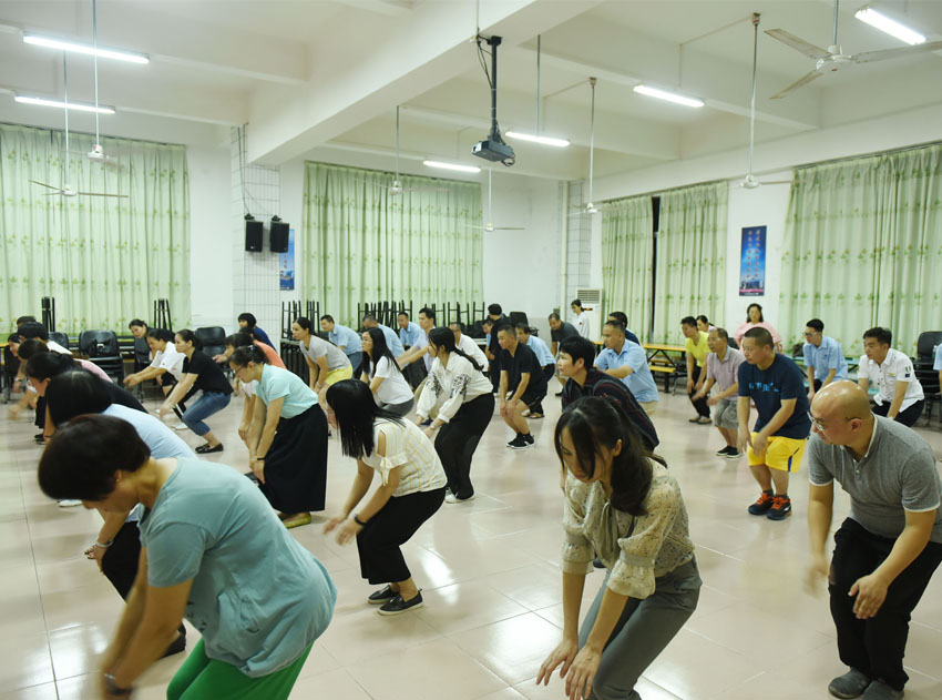 张老师对学员的手型、手法、步型、步法等基本功进行动作指导