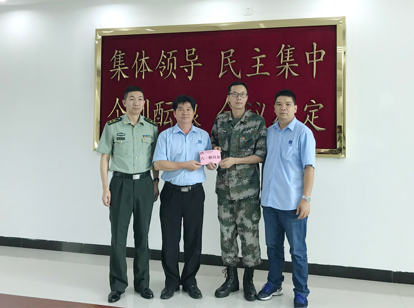 由万事泰集团工会主席梁洪光带队的慰问小组一行走进了县武装部,为广大武装官兵们送上节日问候和慰问金。县武装部陈部长热情接待,并向万事集团对县武装部的支持表示真诚的感谢。