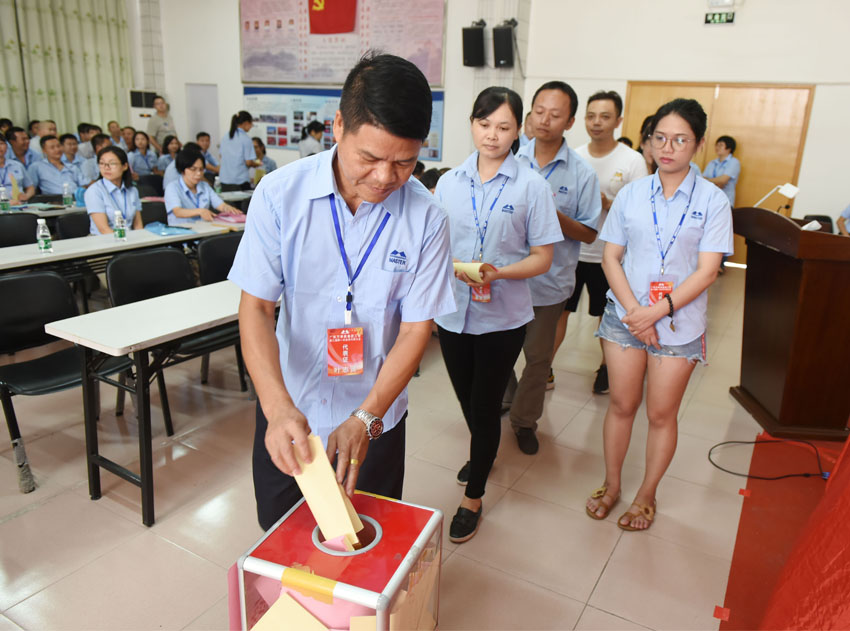 随后,会员代表们以无记名投票选举方法,选举出新一届工会委员会成员。梁洪光当选为工会主席,梁贤武、梁志权、苏瑞萍当选为工会副主席;梁锦添当选为经费审查委会主任;温文翠当选为女职工委员会主任;练美英当选为组织生活委员会主任;欧淑慧当选为文体宣传委员会主任;李辉汉当选为劳动监察与调解委员会主任。