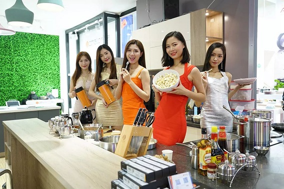 其中,能直接用于电磁炉的铜锅惊艳了现场客商。这款铜锅由万事泰自主研发的新型合金铜铸造而成,它导磁,所以能直接用于电磁炉;外观典雅又不失活力的乐厨系列锅具也是吸睛无数。它除了煎煮焖炖炸样样都行外,各种巧妙的小设计也很能打动人心——其配套的锅盖手柄能与锅铲、锅勺融为一体(可套叠),锅铲、锅勺贴心的镂空设计还能轻松实现沥水、沥油功能……