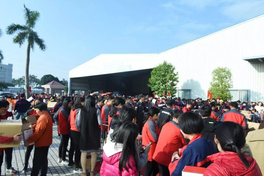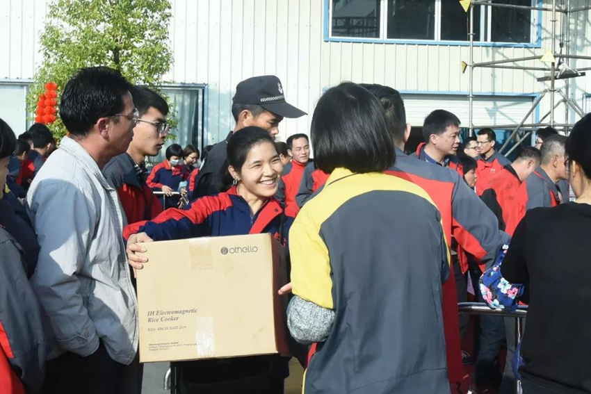早上9点开始,春节福利陆续发放到员工手中。发放现场气氛热烈,随处可见你来我往、手捧肩扛的情景。特别是各部门发放人员配合默契,维护秩序、搬运、核对,各司其责,将承载着公司关怀的福利品传递到员工手中,发放现场洋溢着一片温馨和谐的氛围。
