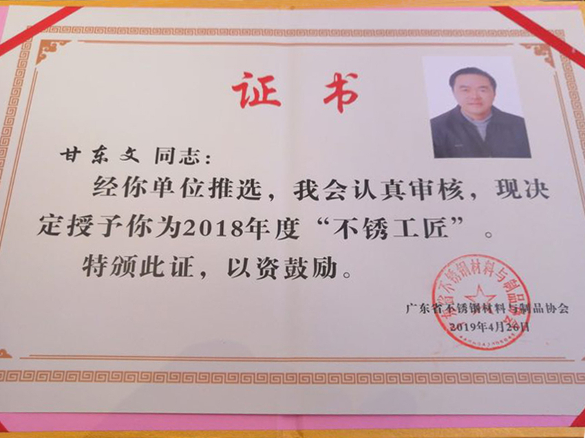 甘东文说,“我只是一名普通的技术管理人员,在万事泰集团还有许许多多比我更优秀的匠人,他们坚守在岗位上,辛勤工作,特别感谢万事泰集团给予我成长的平台,在以后的工作中我会更加努力,力争做行业的排头兵,为广东不锈钢产业高质量发展贡献力量。”
