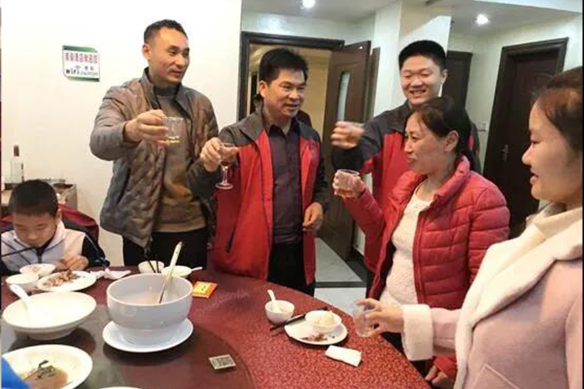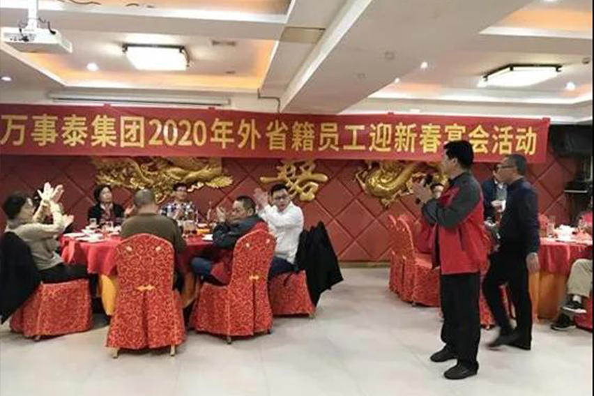 晚宴上,工会主席梁洪光代表集团公司作了讲话,并向全体外来员工致以节日的问候和深深的祝福。他说:“在新春佳节来临之际,希望大家把万事泰当作是自己的家,安安心心、高高兴兴在万事泰过大年。”他还提到,“过去的一年有大家的努力,集团在困境中能突破困难,迎难以上,取得了好成绩,集团非常感谢你们!”