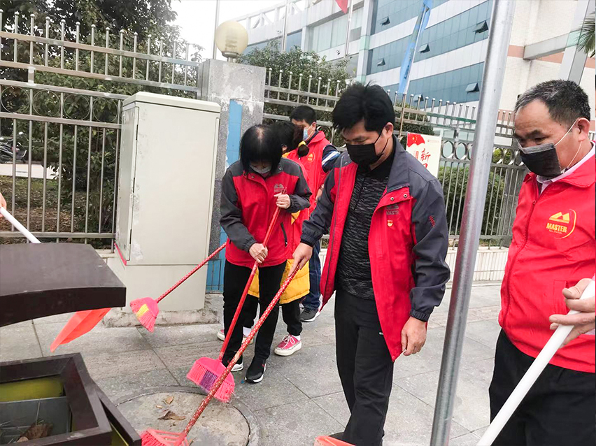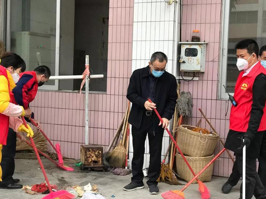 新型病毒疫情趋势不断上升,为严防死守云浮的一片净土,守护集团的安全。在集团放假的情况下,集团常务总裁刘炳耀,工会主席梁洪光,云浮市劳动模范、事业一部冲压车间主任梁志权组织及带领集团志愿者在创省文区域、厂区范围开展卫生消毒、清洁大扫除,把沉积的卫生死角清理得干干净净。
