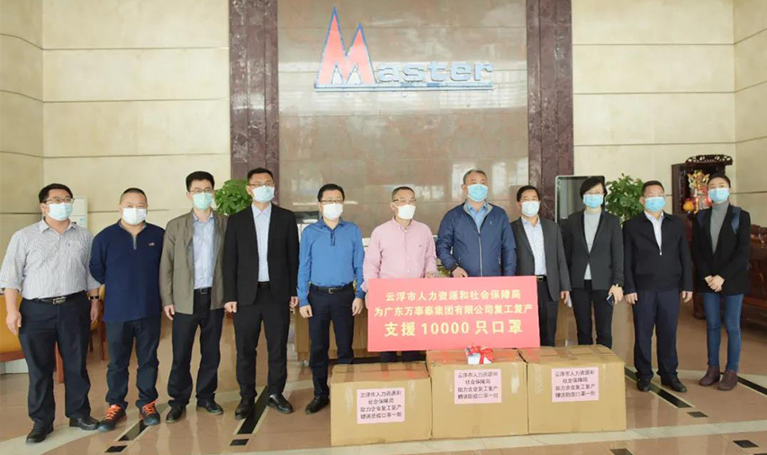 最后由云浮市人社部门赠送我司防疫口罩10000只,以助力企业复工复产。