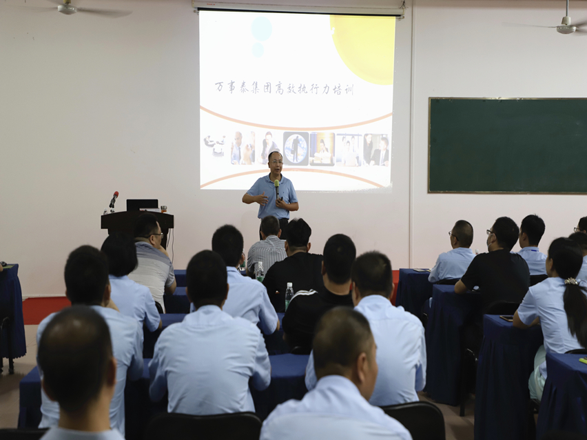 为提高公司管理人员的管理能力、执行力及工作效率,营造积极向上的文化氛围,提高员工业务水平和业务素质,增强企业竞争能力。8月21日下午,万事泰集团特邀请广东工业大学管理学院教授惠青山来开展《高效执行力》专题培训,集团各部门中高层管理人员参加了此次培训。