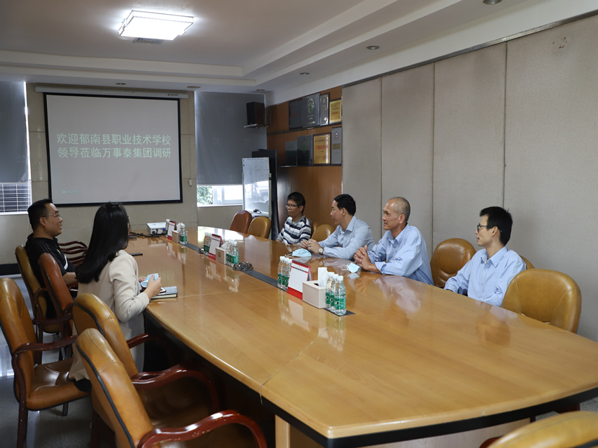 集团讯 11月26日,郁南县职业技术学校领导一行莅临我司调研,万事泰集团人力资源中心副总监赵帆、企业文化部副经理欧淑慧等集团领导陪同调研。
