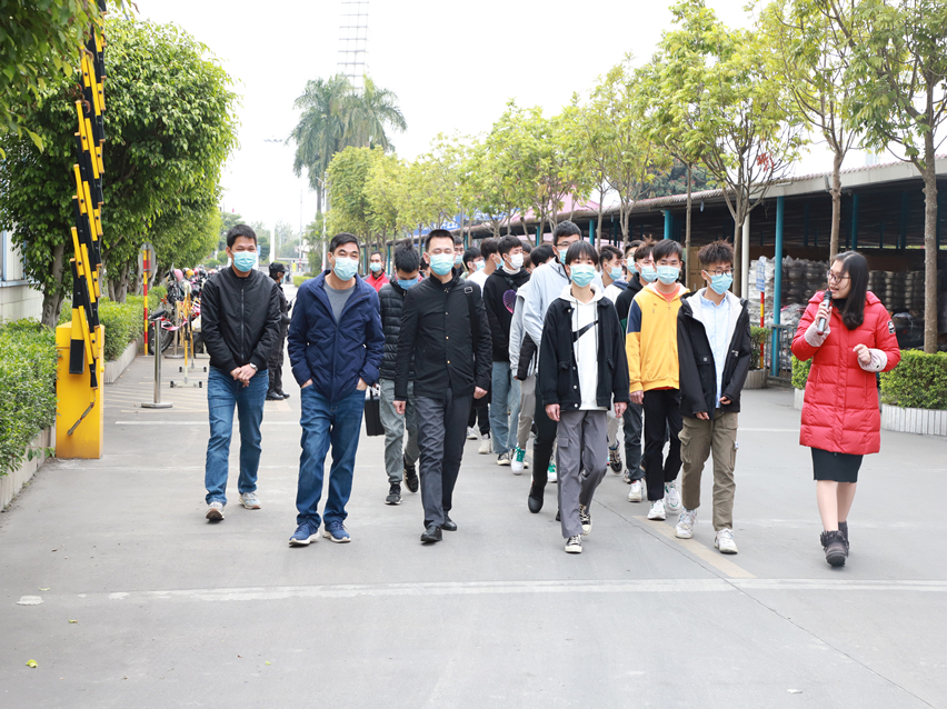 学校领导及学生一行先后参观了自动化生产线、品检中心、员工宿舍及饭堂,详细了解了万事泰生产经营、产品质量管控及员工生活区情况。