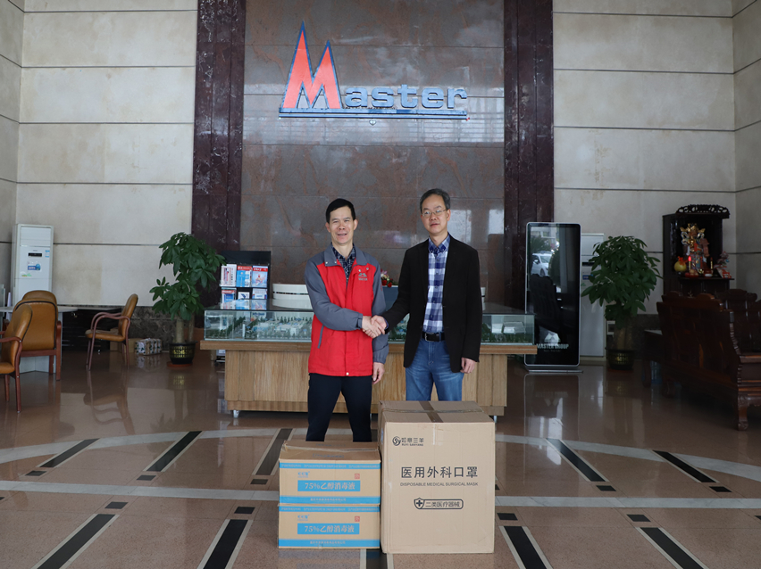 集团讯 12月29日上午,新兴县统战部副部长黄文伟率领统战部干部一行给万事泰送来新冠肺炎病毒防控物品口罩2000个、消毒剂60支。万事泰集团行政部经理陈永锦代表万事泰接收赠送物品。