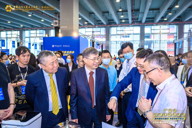 参展期间,中国对外贸易中心主任、广交会副主任兼秘书长储士家,广东省商务厅党组书记、厅长、自贸办主任张劲松一行莅临万事泰展位调研指导,刘炳耀总裁陪同调研并重点介绍了万事泰内销发展情况以及参展产品设计亮点。储士家主任一行对万事泰集团在转型布局以及产品创新等方面给予了充分肯定,鼓励万事泰集团要用好相关政策和平台,继续积极拓展内销渠道、加强产品创新研发、将更多符合国内需求的产品转向内销市场,实现企业更健康发展。