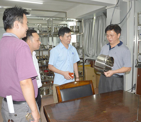 评审会后,评审专家在行政部经理陈永锦的带领下参观调研了技术中心、生产车间和检测中心。生产现场的高新设备让在场的专家赞叹不已。