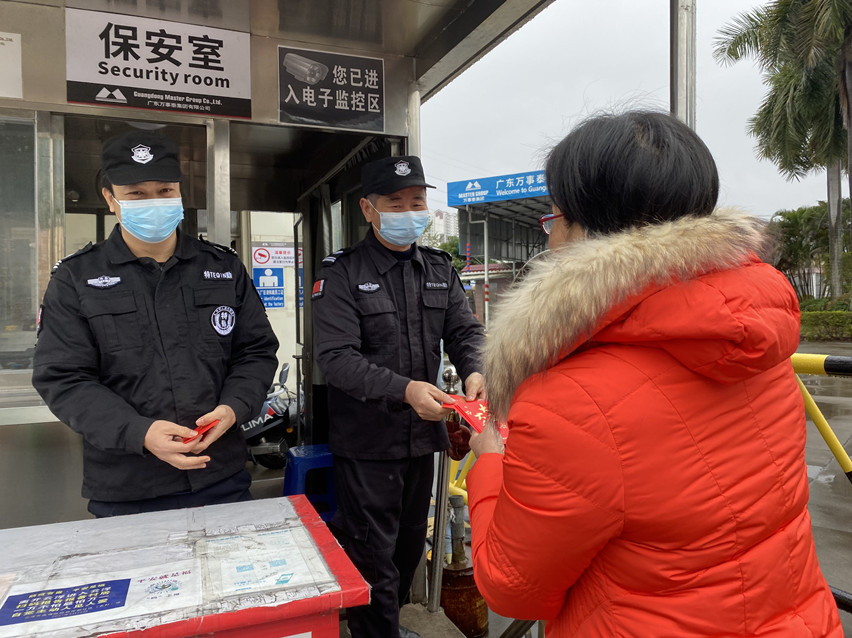 集团讯 2月1日,农历正月初一,正值新春佳节、阖家欢乐之际。万事泰集团副总裁和行政部总监等集团领导走访慰问了仍坚守在一线的值班人员,向他们送去节日的问候和祝福,对他们的默默坚守致以衷心的感谢,并强调要切实贯彻实施疫情常态化防控工作部署,认真履行岗位职责,站好每一班岗,落实值班、巡查等制度,发现问题及时上报并处理,规范细致做好节日期间的值班值守和安全巡查工作。