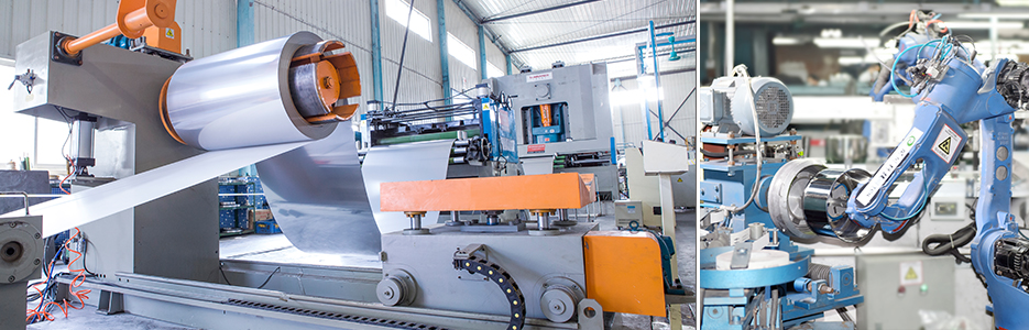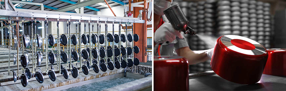 集团拥有先进的大规模生产基地,属下工厂占地23万余平方米, 标准厂房面积15万多平方米,拥有自动/半自动生产线 20 余条、各类先进机械设备达 2000 多台(套),主要生产设备和质量检测设备均为进口或采用国内一流设备,关键技术从欧洲、日韩等国引进,设备 技术水平居于国内行业领先。集团生产能力位居行业前列,年可生产各种规格的不锈钢餐厨炊具、铝制餐厨锅具达2800万只、钢化玻璃盖1200万只,小家电200万只,不锈钢和铝制品年加工能力超过36000 吨,年可出口货值超过 3500 个标准货柜,能满足世界各地客 户大规模的订单需要。